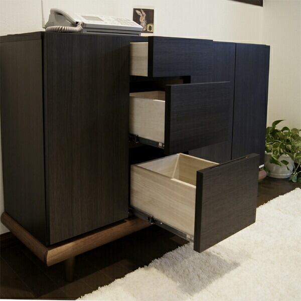 上部1段目以外の引出しは全て耐久性に優れた3段式のスライドレール仕様になっておりフルオープンが可能。引出しの出し入れも片手でもスムーズにサポートしてくれます。