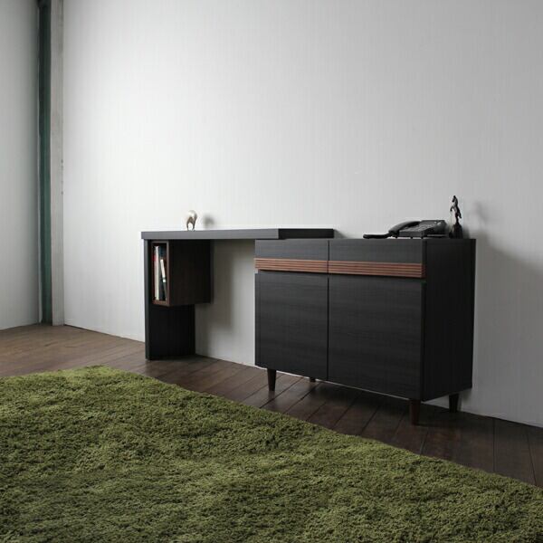表面材には日本製の強化硬質シートを前面及び天板トップに使用しております。この強化硬質シートとは、表面強度に優れ室内環境に配慮した家具、建装材としてデザイン・品質設計された非塩ビ化粧フィルム です。室内建具・造作材をはじめキッチン扉・収納家具材など幅広い用途で使用されている素材です。メンテナンスの必要がなく無垢材や突板(天然木シート材)に比べ日焼けや熱や寒さにも非常に強く心材にはフラッシュボード(パネル構造板)を使用しており反りや割れの心配もございません。また汚れやキズにも強く日常のお手入れもカラ引きで十分OK。また天板枠には無垢材をトメ継ぎ加工で巻いておりデザイン性でも優れた仕上がりとなっております。家具本体の組み立て、生産は日本有数の家具産地である福岡県大川市の当店指定工場にて生産。