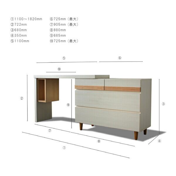 日本製 国産 商品名| JK チェスト デスク 電話台 伸縮式 奥行35cm カラー| ホワイト 白 木目 サイズ| 幅 110~180 奥行35 高さ72cm 生産国| 国産 日本製 主素材| オーク 無垢 硬質紙 北欧 モデム収納 ファックス台 テレワーク ミシン台