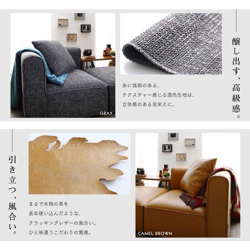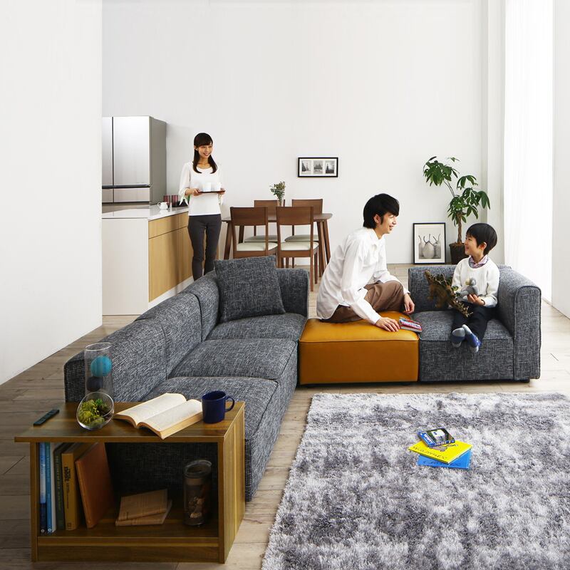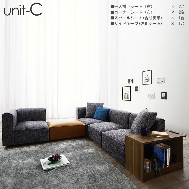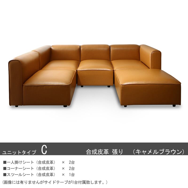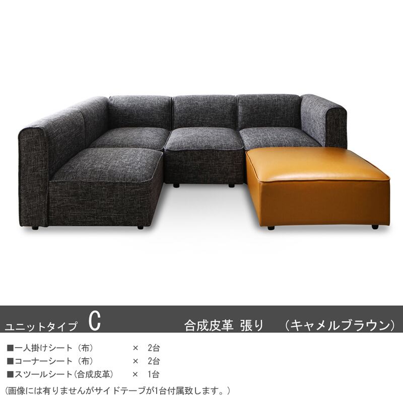 UN-DユニットタイプCセット コーナーソファ カラー| 2色対応 主素材| ポリエステル 合成皮革 ウレタンフォーム お部屋のスタイルに合わせて変化可能 レイアウト自由自在 サイドテーブ付き ※1年保証付き モダン 北欧 sofa 4人掛け 3人掛け