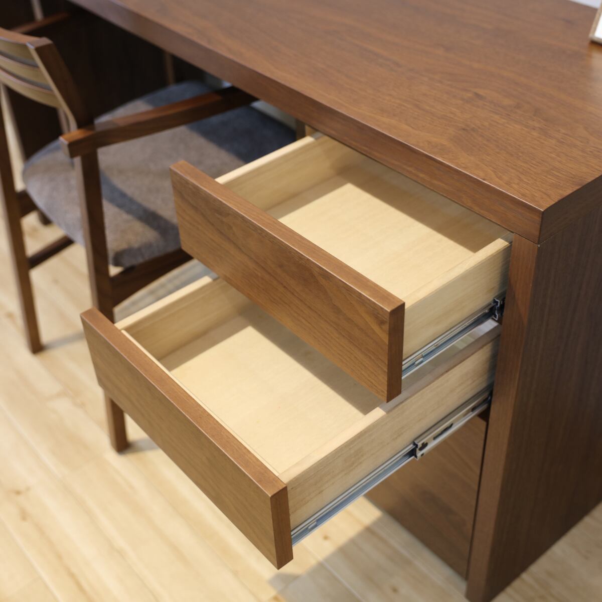 天板には重厚な木目と上品な色合いが魅力のウォールナット突板を使用しております。