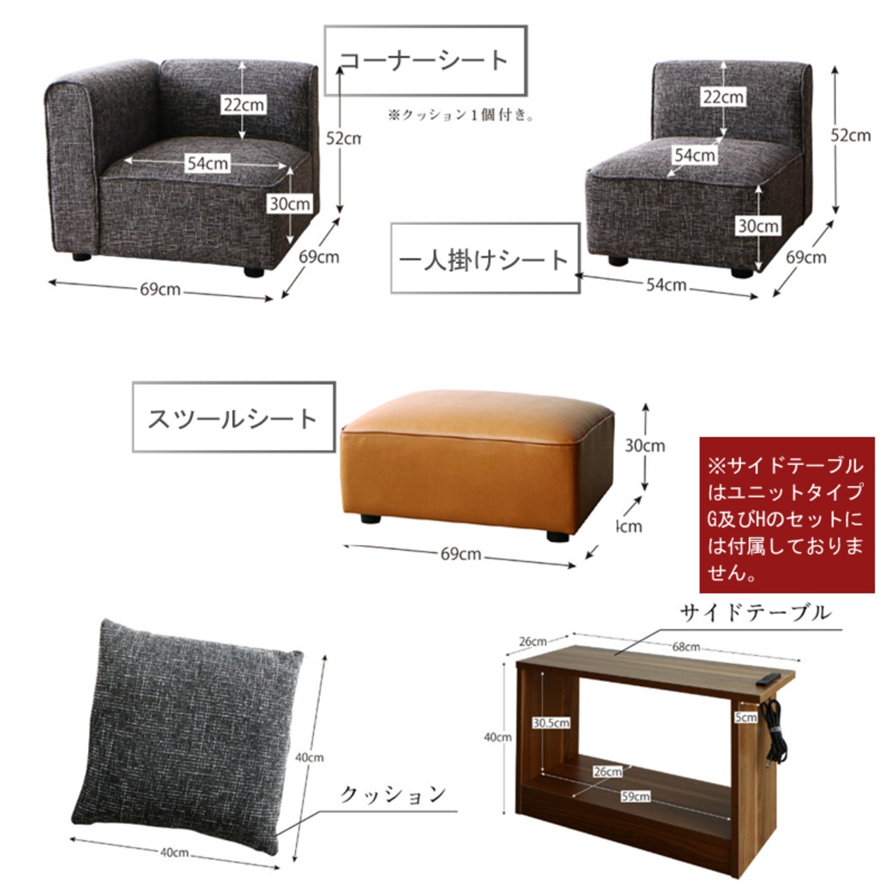 コーナー:幅69×奥行69×高さ52cm(座面高30cm)