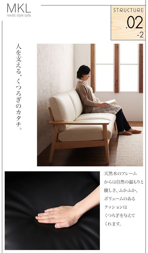 MKL 2人掛けソファ 無垢ナチュラルフレームソファ カラー| ブラック ブラウン アイボリー サイズ| 横幅約125 奥行75 高さ78cm 主素材| PVC 天然木 アッシュ タモ無垢材 北欧スタイル 2Pソファ 北欧 モダン おしゃれ シンプル クッション SOFA