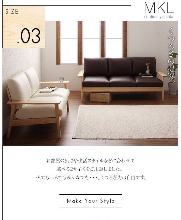 MKL 2人掛けソファ 無垢ナチュラルフレームソファ カラー| ブラウン ブラック アイボリー サイズ| 横幅約125 奥行75 高さ78cm 主素材| PVC 天然木 アッシュ タモ無垢材 北欧スタイル 2Pソファ 北欧 モダン おしゃれ シンプル クッション SOFA