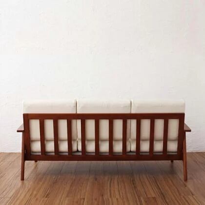 直線的な形状と天然木の自然な色合いで、飽きのこない普遍的な魅力を持ったソファです。