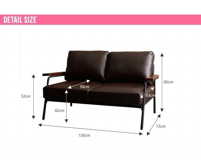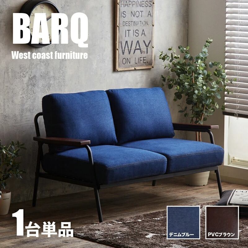 BARQ-2P 【1台単品】 バーク 二人掛け ソファー SOFA カラー PVC デニム ブルー /ブラウン サイズ 幅136cm×奥行73cm×高さ約80cm 座面高:約42cm 合成皮革 レザー ブルックリンスタイル 西海岸テイスト 北欧 組み立て商品 ミッドセンチュリー 店舗用にも