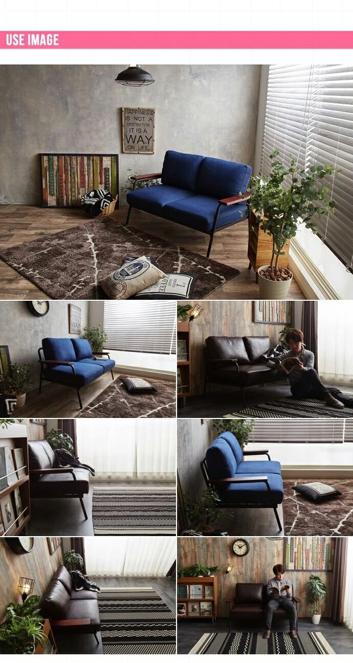 BARQ-2P 【2台セット】 バーク 二人掛け ソファー SOFA カラー PVC デニム ブルー /ブラウン サイズ 幅136cm×奥行73cm×高さ約80cm 座面高:約42cm 合成皮革 レザー ブルックリンスタイル 西海岸テイスト 北欧 組み立て商品 ミッドセンチュリー 店舗用にも
