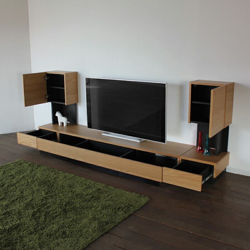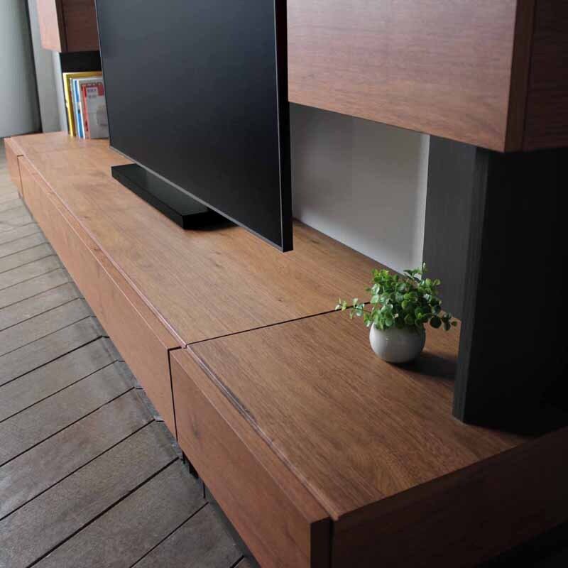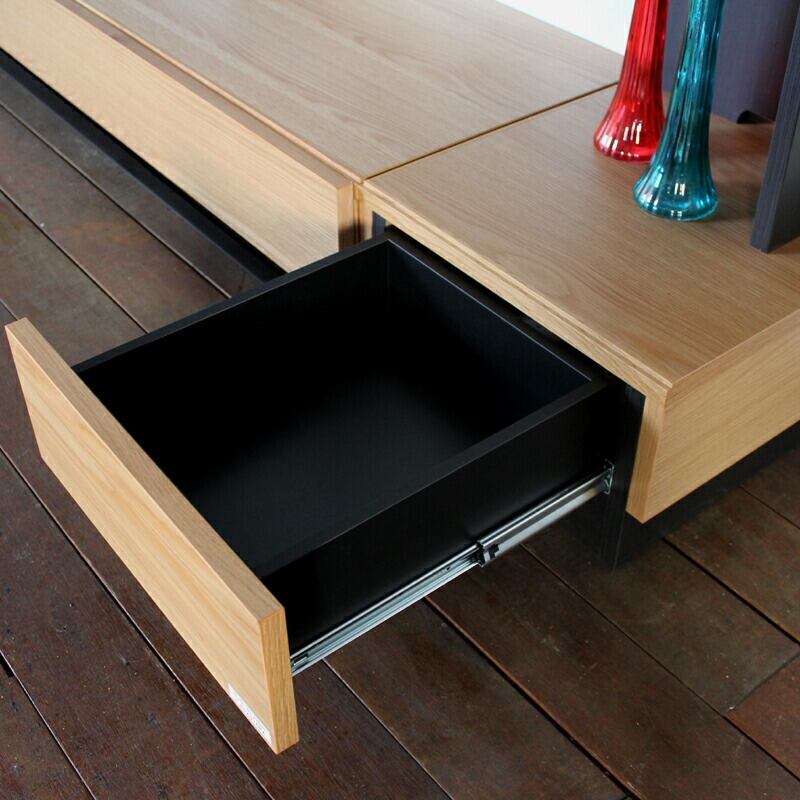 引出しはテレビ台、サイドキャビネットともに耐久性に優れた3段式のスライドレール仕様になっておりフルオープンが可能。引出しの出し入れも片手でもスムーズにサポートしてくれます。