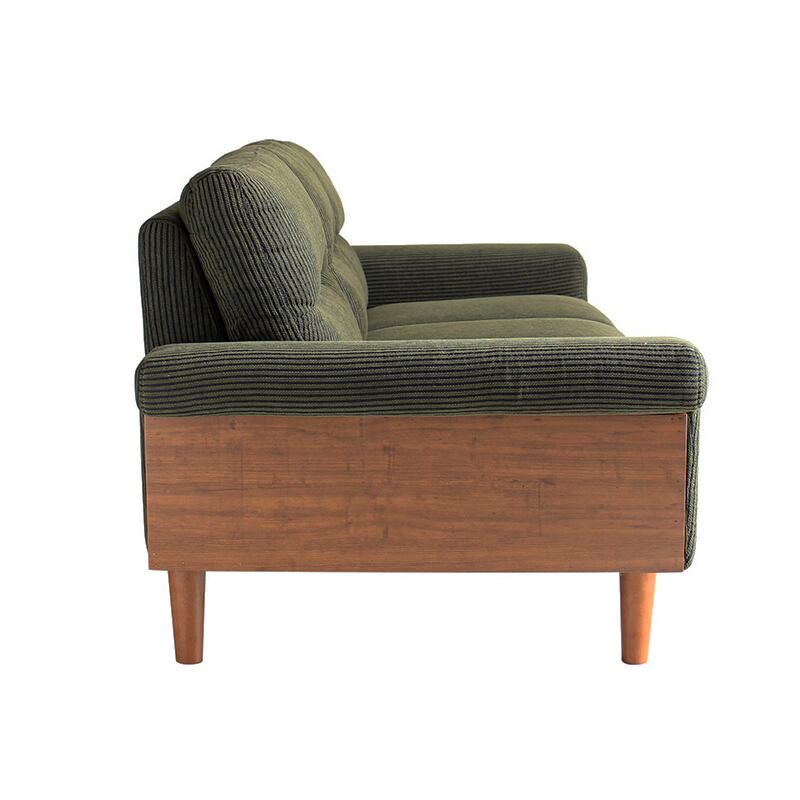 BSF-3P 三人掛けソファーは、北欧のミッドセンチュリースタイルを取り入れた洗練されたデザインが特徴です。カーキー色とグリーン色の組み合わせがお部屋に優しいアクセントを加え、ポリエステル素材の布地と無垢脚が高級感を演出します。