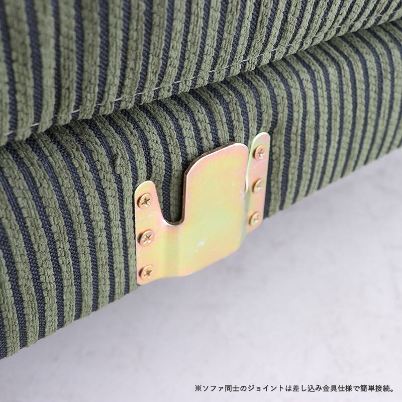 クッション構造は背部にはウレタンフォームとウェービングベルト、座面部にはウェービングベルトSバネ、ウレタンフォームの3構造を採用。ほど良い沈み込みとフラットで均等の取れた座り心地を感じるソファシリーズです。また張地はポリエステル布張りでなめらかな触り心地のファブリック(布)を採用しています。