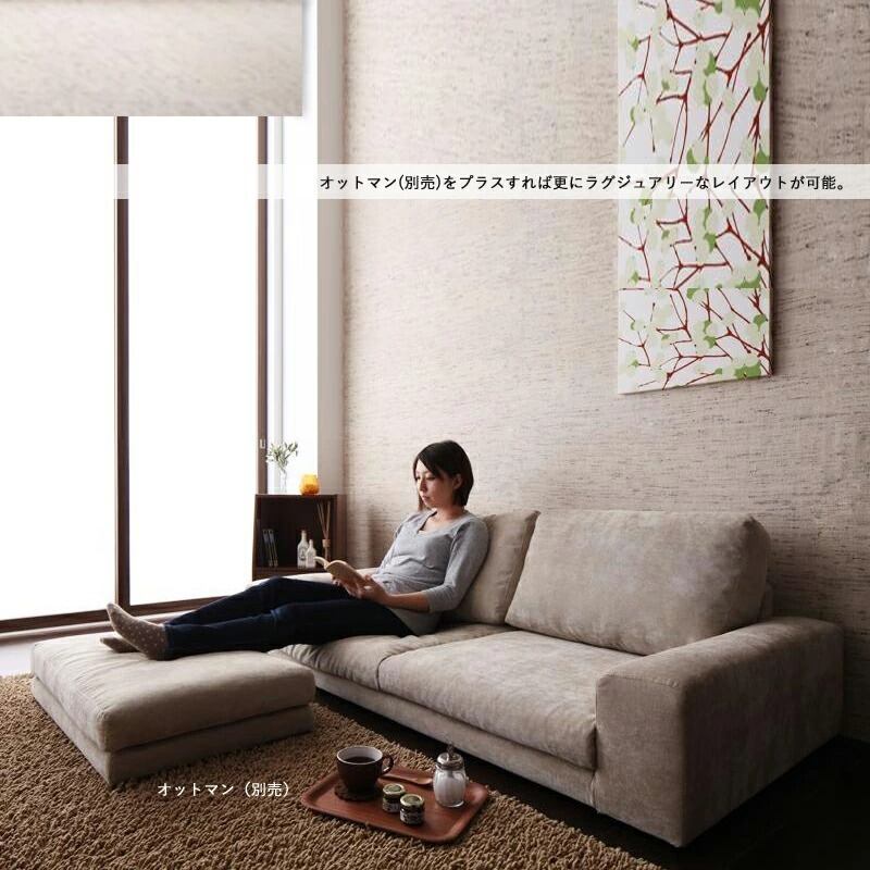 フロアソファLENは、3人掛けのローソファで、ハイバック仕様でゆったりとくつろげるデザインです。3色からお選びいただけるカラーバリエーションで、お部屋の雰囲気に合わせてお好みの色をお選びいただけます。また、別売りのオットマンもございますので、より快適な時間をお過ごしいただけます。