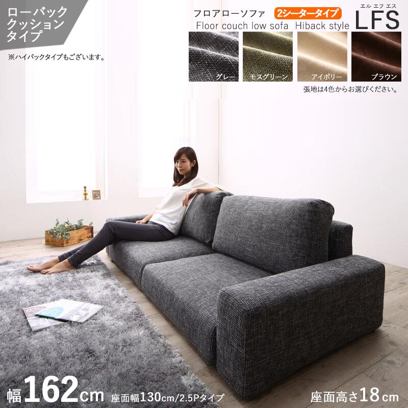 フロアソファ 【LFS/2シータータイプ/2.5P/ローバック】 幅162cm グレー色 / 全4色 2人掛け ポリエステル100%・ウレタン 別売オットマンもご用意