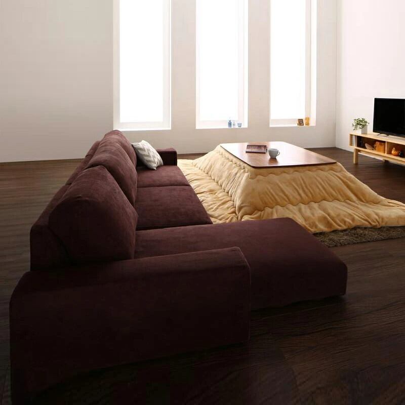 インテリアとしてのデザインソファとこたつ生活の両立。こたつに入りながら、ソファでくつろぐ時間は、使った人のみが知る極上の時間。