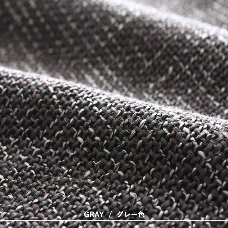 コーデュロイのような、起毛感のある生地。触るとぬくもりのある生地感が気持ちいい。毎日を過ごす場所だから、肌に触れた感触は気持ちいいものを。 高級感が際立つテクスチャーの感じる混色織生地。糸に強弱のある混色生地は、立体感のある見栄えに。高級ソファにも使われる、本格生地。