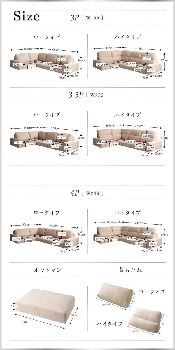 横幅199×奥行149×高さ(ロータイプ)54 cm