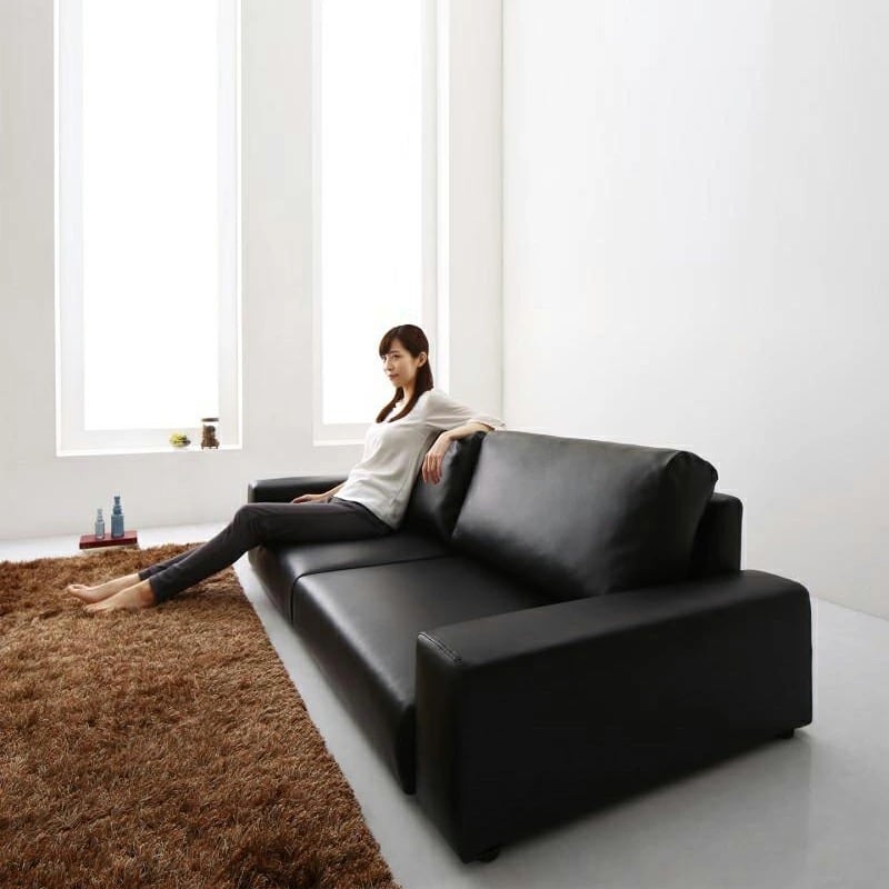 座面の低い、くつろぎスペースを演出するロータイプのフロアソファ。合成皮革張りでお手入れ簡単、落ち着いた雰囲気をプラスするベーシックな3色をご用意しました。