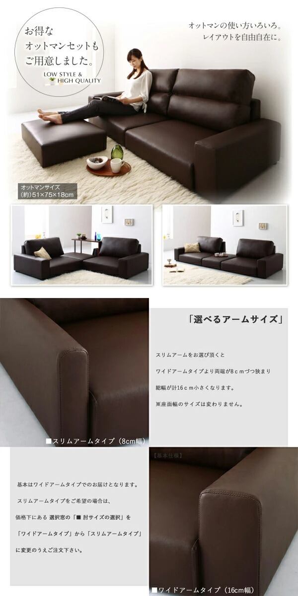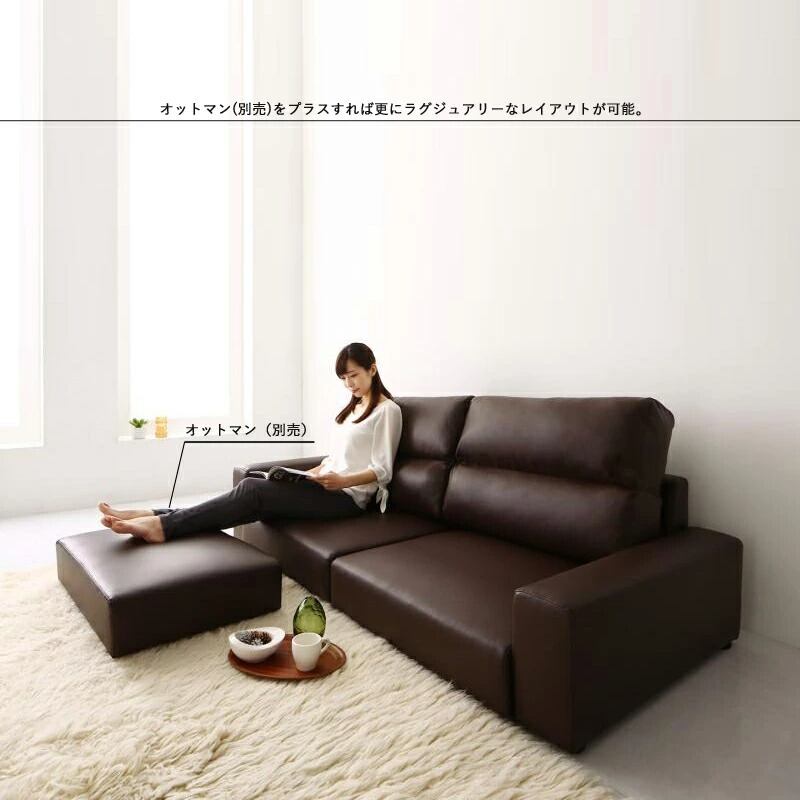 座面の低い、くつろぎスペースを演出するロータイプのフロアソファ。合成皮革張りでお手入れ簡単、落ち着いた雰囲気をプラスするベーシックな3色をご用意しました。