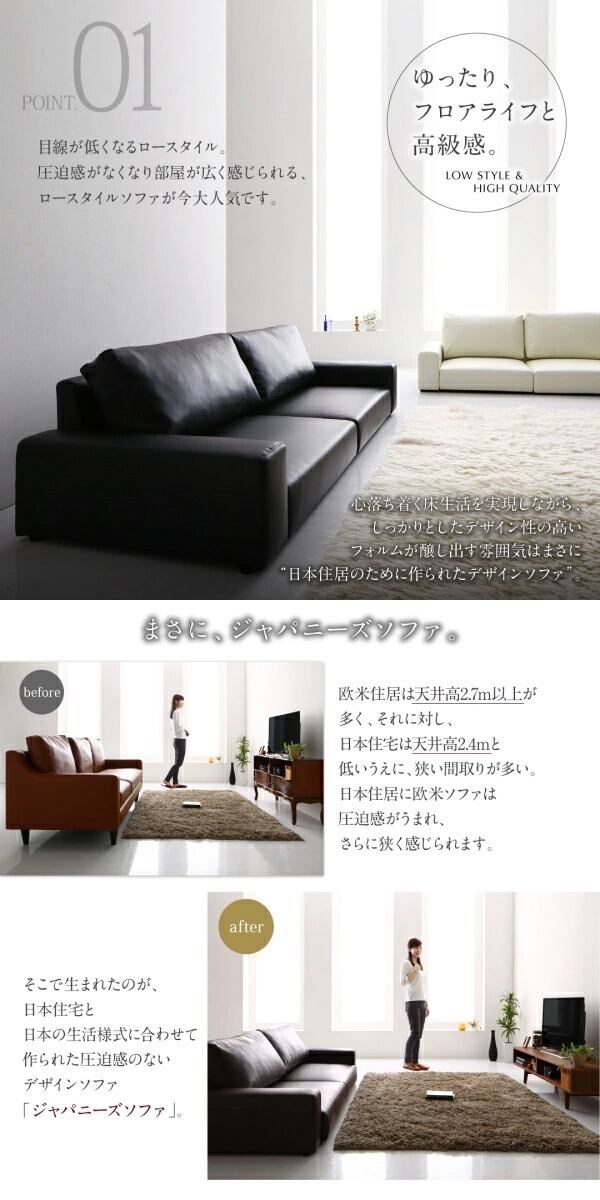 目線が低くなるロースタイル。圧迫感がなくなり部屋が広く感じられる、床により近くなり落ち着く、ロースタイルソファが今大人気です。 目指したのは、ロースタイルでも、高級感のあるしっかりソファ。心落ち着く床生活を実現しながら、しっかりとしたデザイン性の高いフォルム が醸し出す雰囲気はまさに日本住居の為に設計されたデザインソファ。