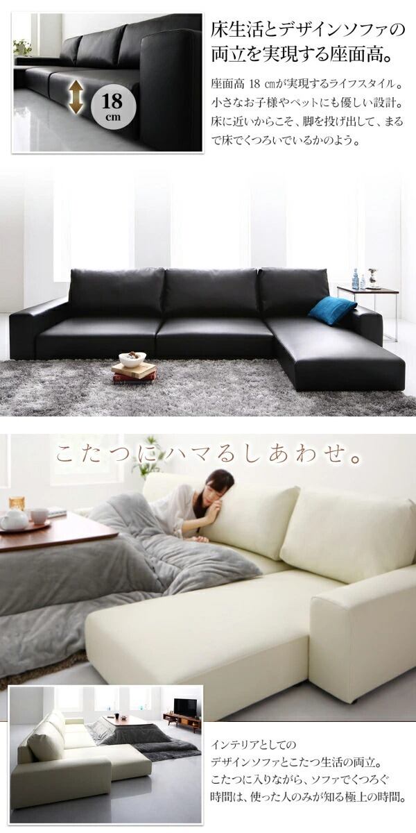 床生活とデザインソファの両立を実現する座面高。座面高18cmが実現するライフスタイル。小さなお子様やペットにも優しい設計。 床に近いからこそ、脚を投げ出して、まるで床でくつろいでいるかのよう。