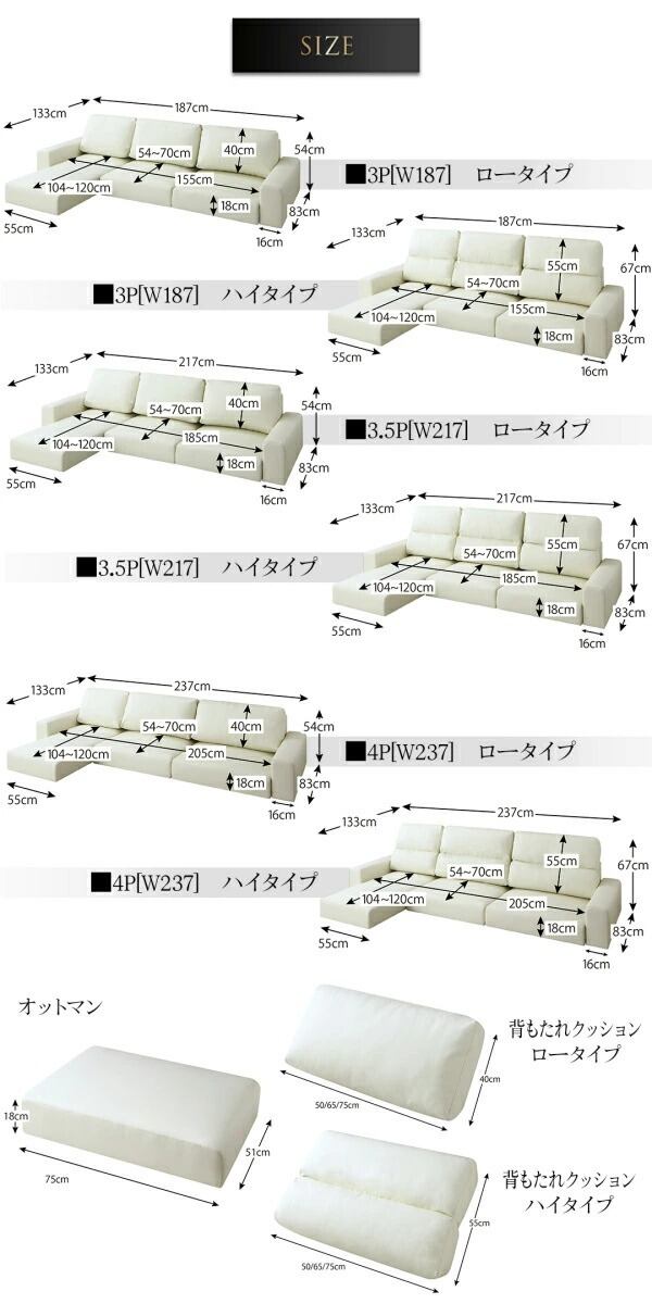 また【LFS/カウチソファ/3P/ローバック】で検索していただくと、色違い、素材違いも表示されます。