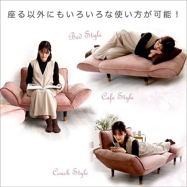リラックスタイムを贅沢に演出するベロアカウチソファ。上質なベロア生地が触り心地抜群で、モダンなデザインがお部屋にアクセントを添えます。