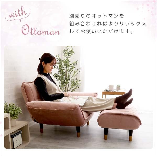 くすみカラーのベロア生地は高級感があり、ストライプのステッチが甘さを抑えて大人の暮らしに馴染みます。ゴールドをあしらった脚も美しさを引き立ててます。