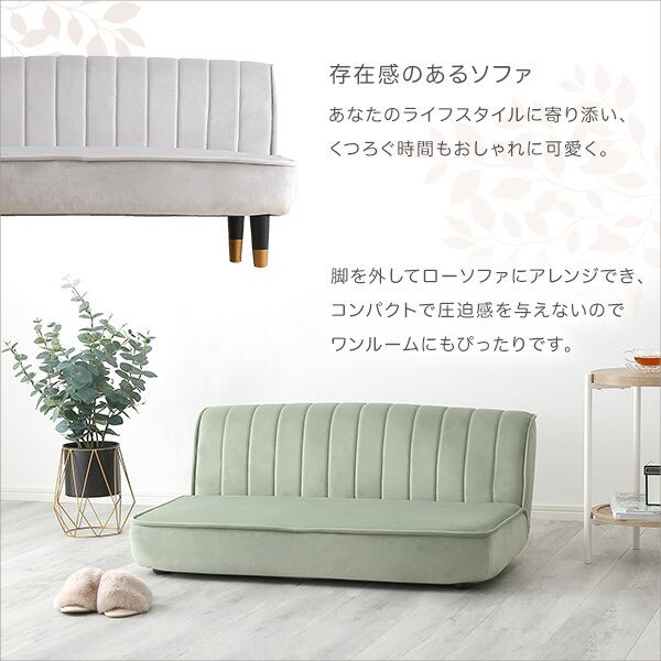 コンパクトサイズなのでお部屋に圧迫感を与えにくく、また脚を取り外せばこたつソファにも。