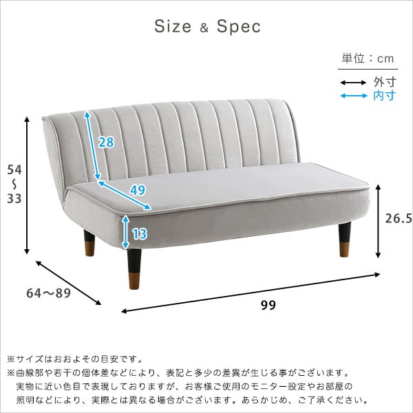 ベロア調生地 脚付きローソファ 2人掛け 背もたれ14段階リクライニング (ベージュ) 全4色 8タイプ 脚を外してローソファにも クッション性の高いポケットコイルシ ンプル くすみカラー かわいい ソファー OKLBS-SHZO