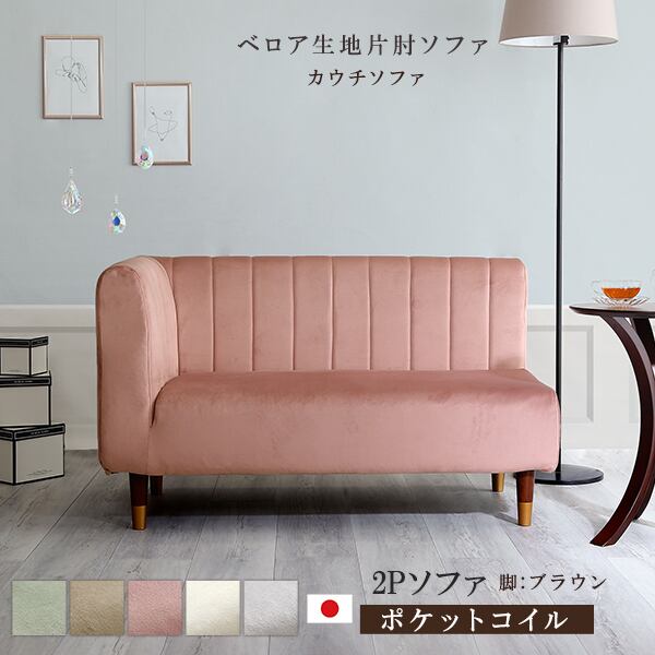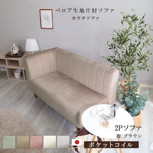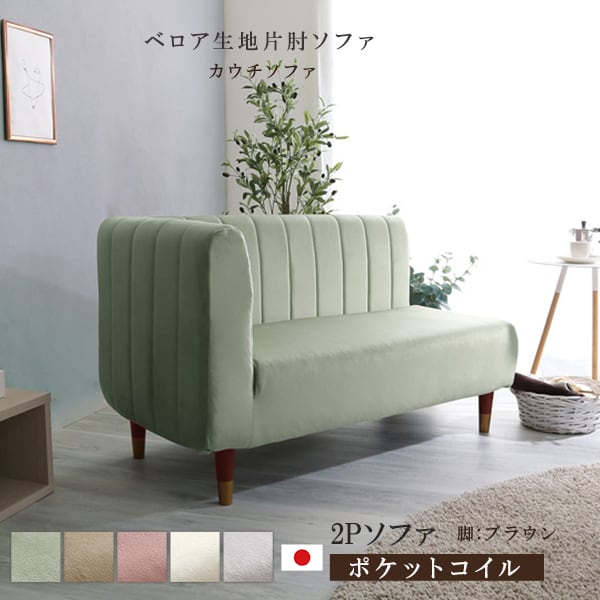 片肘2人掛けソファは、全5色10タイプのクッション性の高いポケットコイルシンプルカウチソファです。くすみカラーでおとなかわいい雰囲気を演出します。お部屋のアクセントにピッタリのアイテムです。
