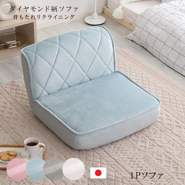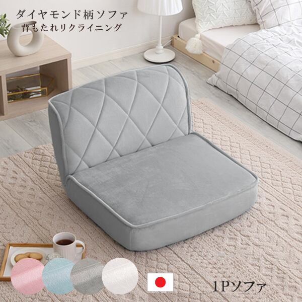 ダイヤモンドステッチソファ 1人掛け (ホワイト) 全4色 ふんわり起毛生地 14段階リクライニング ポケットコイル パステルカラー ローソファ 座椅子 シンプル おとなかわいい OKDMS-SHZO