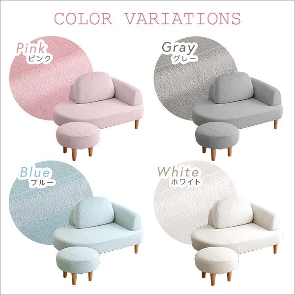 カウチソファ スツールセット (ブルー) パステルカラー 全4色 ロータイプにも ポケットコイル コンパクト シンプル かわいい オットマン