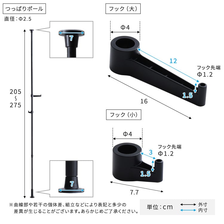 ポール長さ:(約)205〜275cm