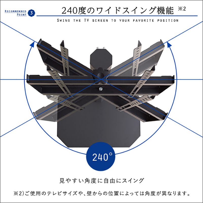 角度調整も可能で240度のワイドスイング機能が付いています!