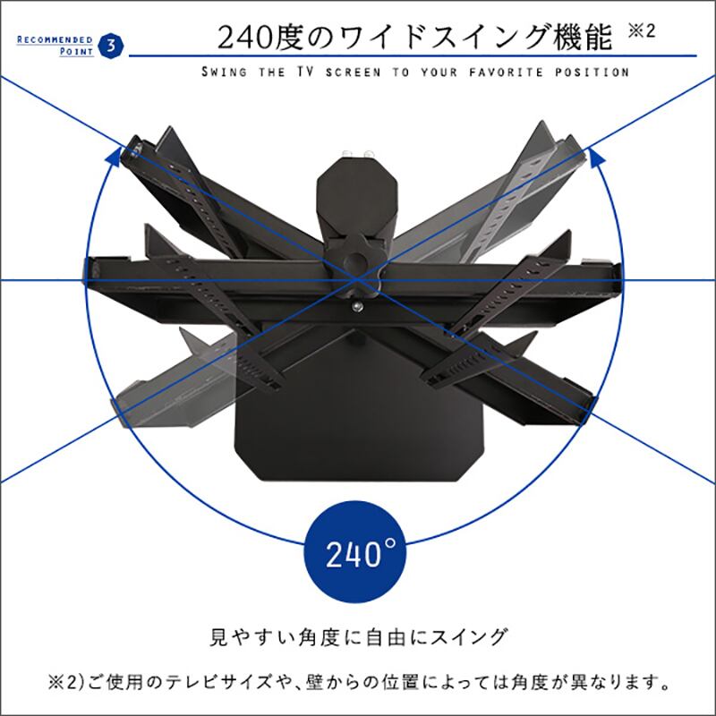 角度調整も可能で240度のワイドスイング機能が付いています!