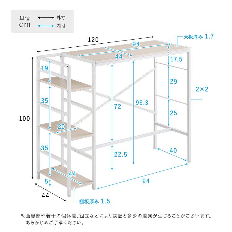 スタンディングデスク ハイデスク 作業台 ホワイトオーク全3色 集中力UP フットレスト 足掛け 収納ラック