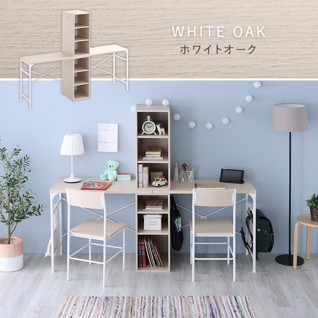 このデスク 本棚セットは、お子様の学習環境を整えるために作られました。デスク上のスペースは広くとられており、勉強や読書に集中できる環境を提供します。兄弟姉妹で一緒に勉強したり、おもちゃを片付けたりする場所としても最適です。