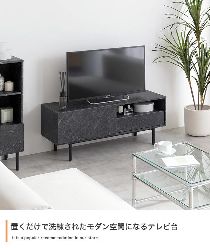 テレビ台 RISUE 100cm幅 テレビボード 組立品 ローボード ロータイプテレビ台 北欧 大理石調 ホワイト ブラック 全2色