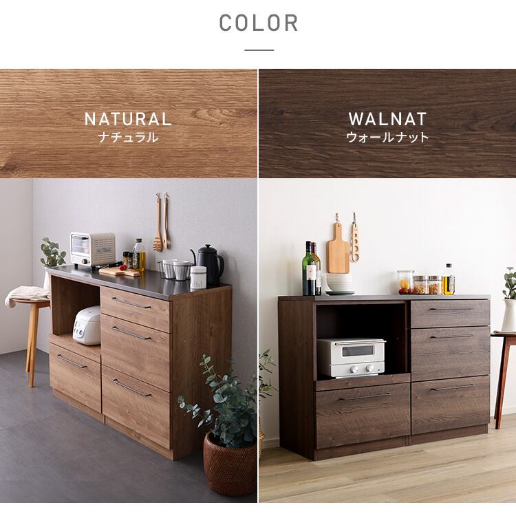 キッチンカウンター LGO 120cm 日本製 木目×スチール 美しく丈夫なブラックトップ (オープン収納+引き出し収納)