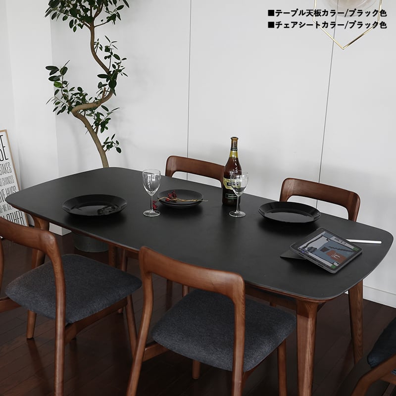 ダイニングテーブル EN-D 140cm幅 天板ブラック 幅140×奥行80×高さ71cm 耐久セラミック天板 アッシュ天然木 天然木フレーム
