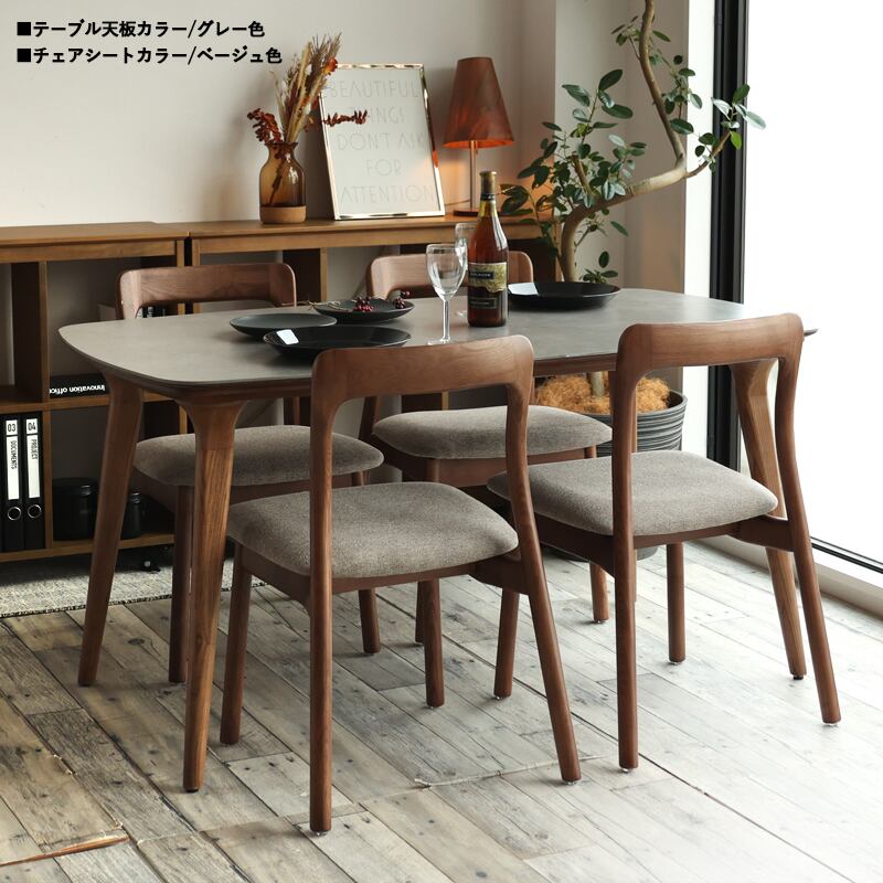 ダイニングテーブル EN-D 140cm幅 天板グレー 幅140×奥行80×高さ71cm 耐久セラミック天板 アッシュ天然木 天然木フレーム