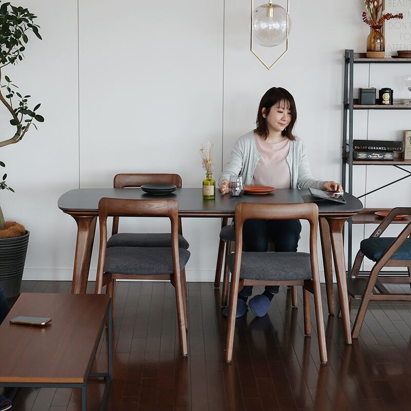 ダイニングテーブル EN-D 160cm幅 天板グレー 幅160×奥行80×高さ71cm 耐久セラミック アッシュ天然木 天然木フレーム