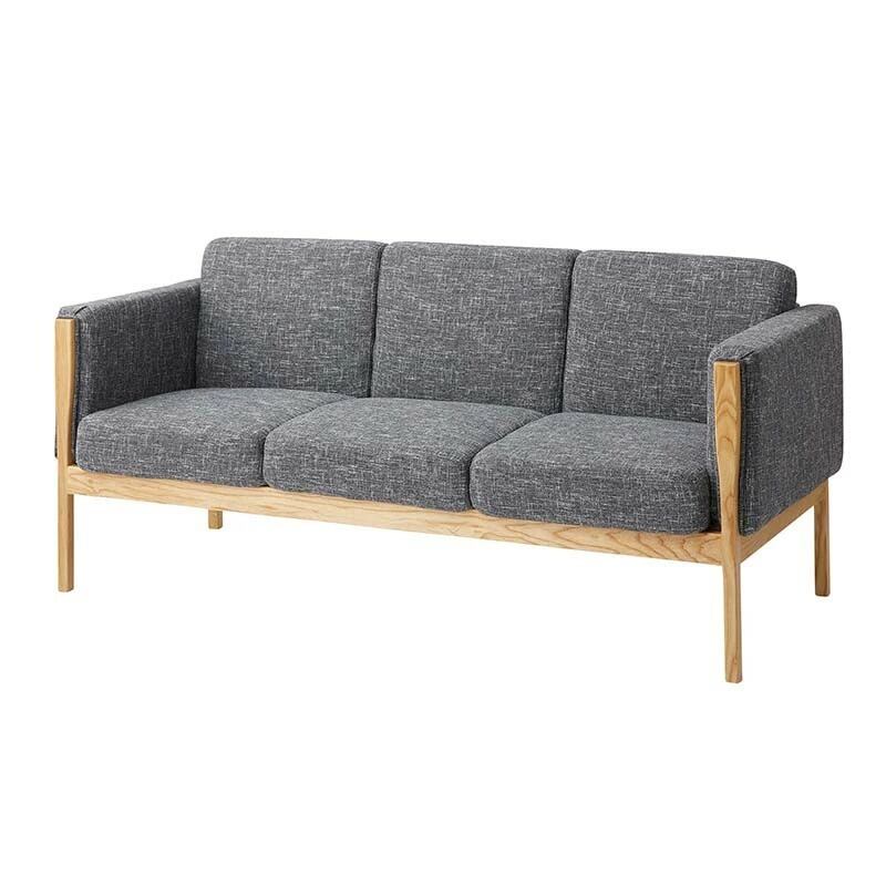 HJW 3人掛けソファ 無垢ナチュラルフレームソファ グレー色シート/アイボリー色シート 横幅約172 奥行76 高さ75cm ポリエステル 天然木 アッシュ 無垢材 北欧スタイル 3Pソファ 北欧