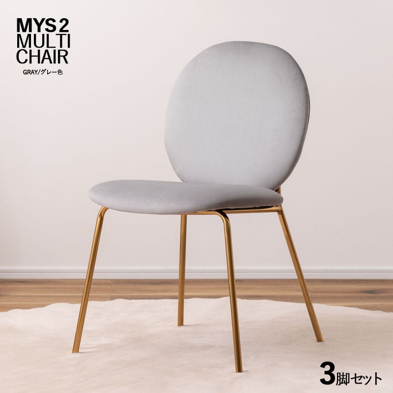 ダイニングチェア 3脚セット デスクチェア ベロア布張り 肘なし 座り心地ふっくら ゴールド色 スチール脚 姫系レトロかわいい MYS2