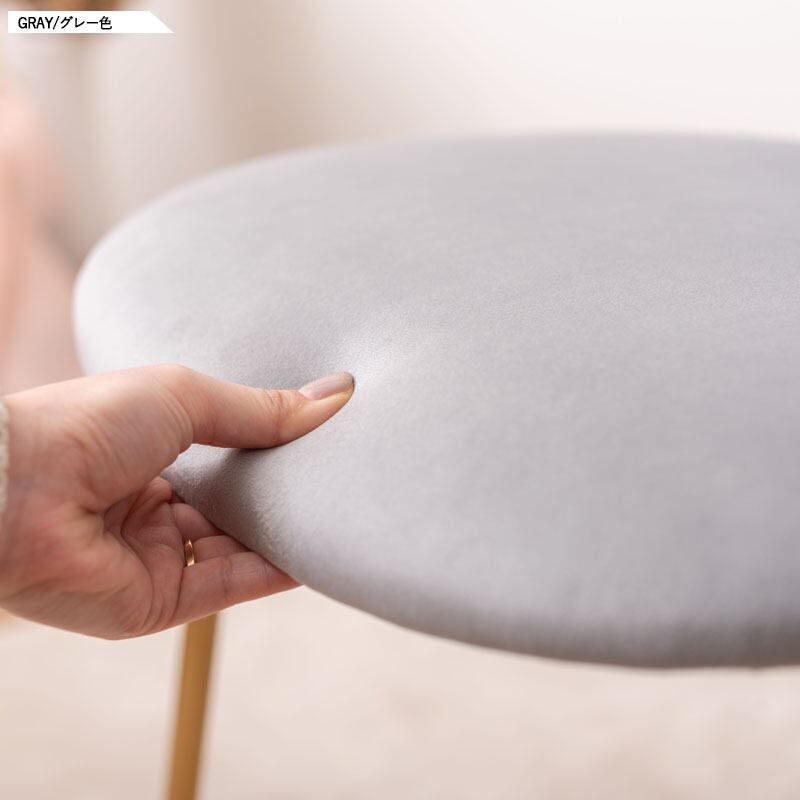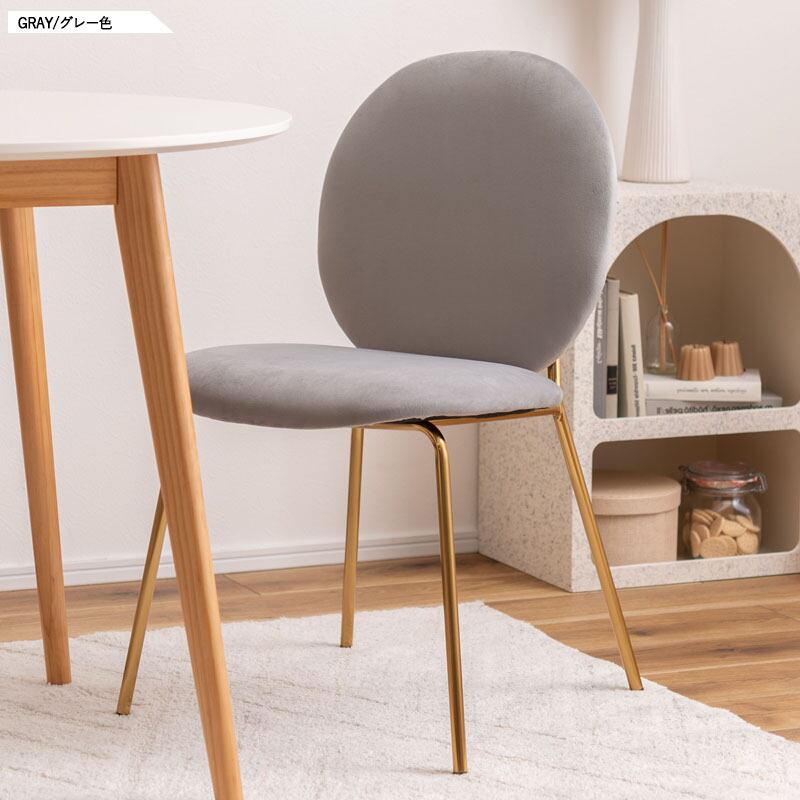 ベロア調の張地とアンティークゴールド色メッキのシャープな脚部を組合せたチェア。シンプルながらガーリーでエレガントをプラス。