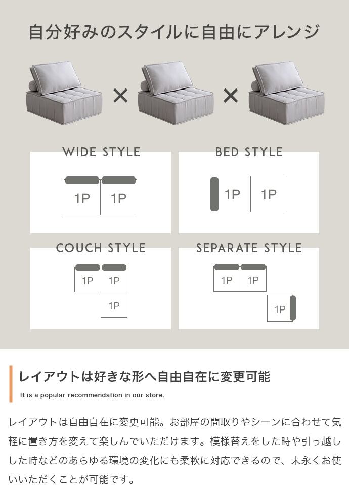 セパレート式でお部屋の間取りなどに合わせて気軽に組み替えていただけます。