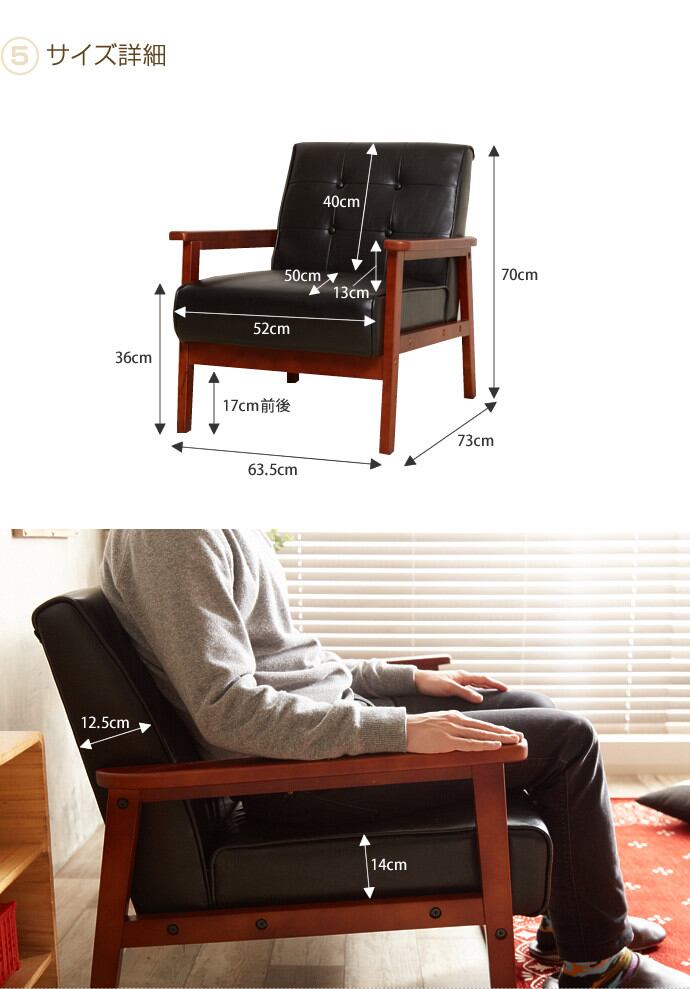 ソファ 1人掛け 天然木製フレーム 一人掛け 布張り PVCレザー張り 1P レトロモダン 北欧インテリア 幅63.5cm RENT1