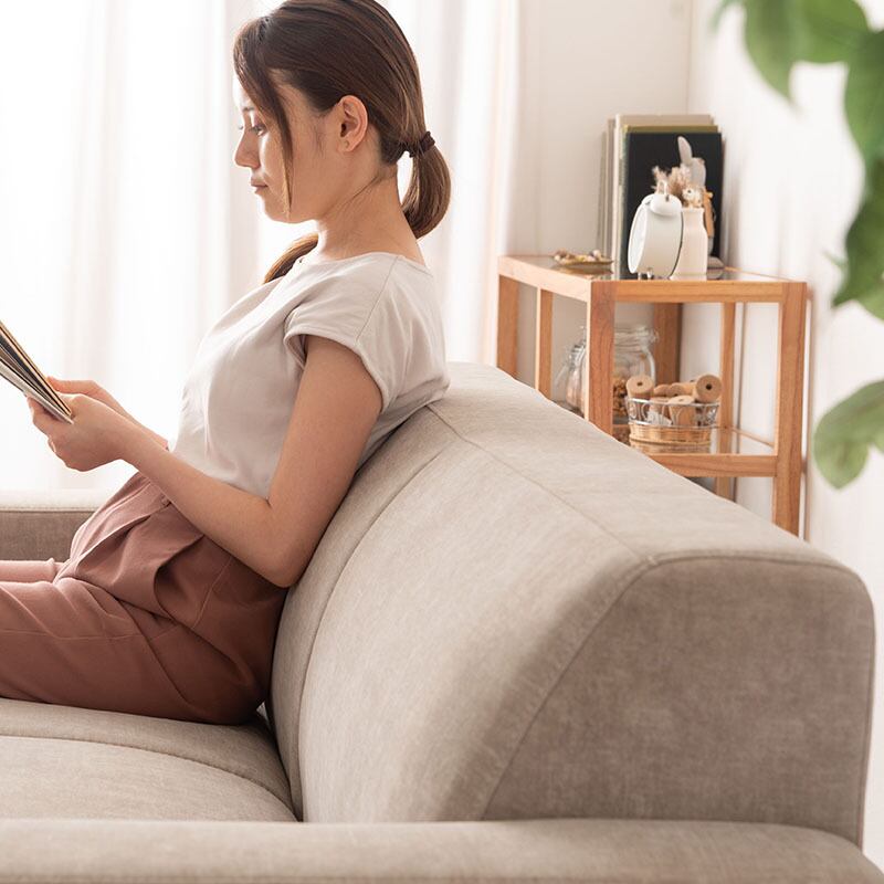 自分の生活スタイルに合わせて選べる張地カラー&脚部デザインが人気の180cm幅の シンプルスタイリッシュな三人掛けソファ。構造は木性フレーム、クッション構造は フラットな座り心地と耐久性に優れたSバネとウレタンクッション構造。