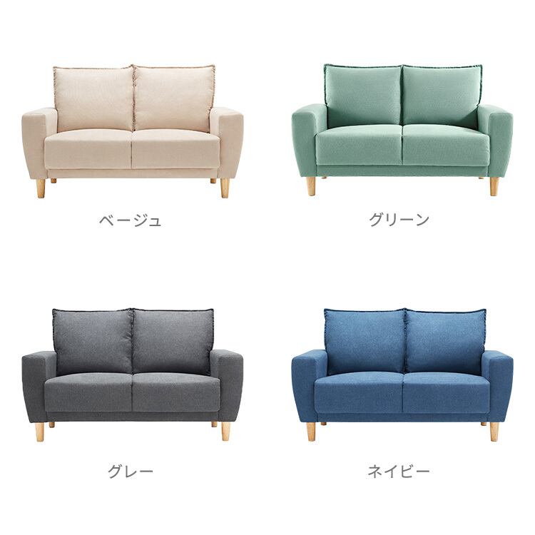 ソファー 2人掛け コットンフランネル アームソファ 130cm 全4色 布張り 木脚