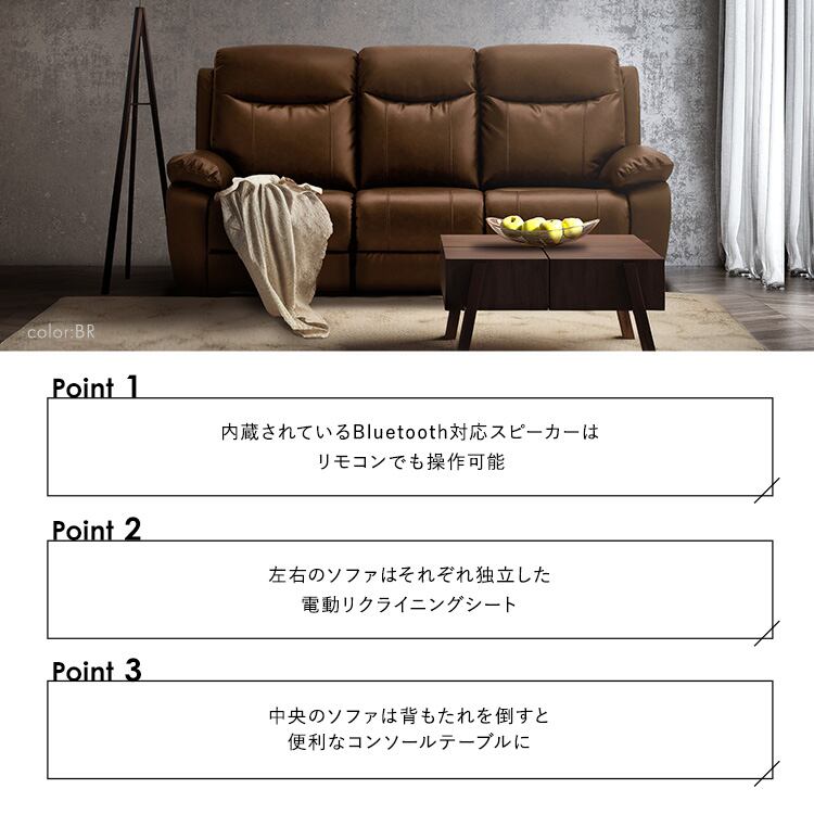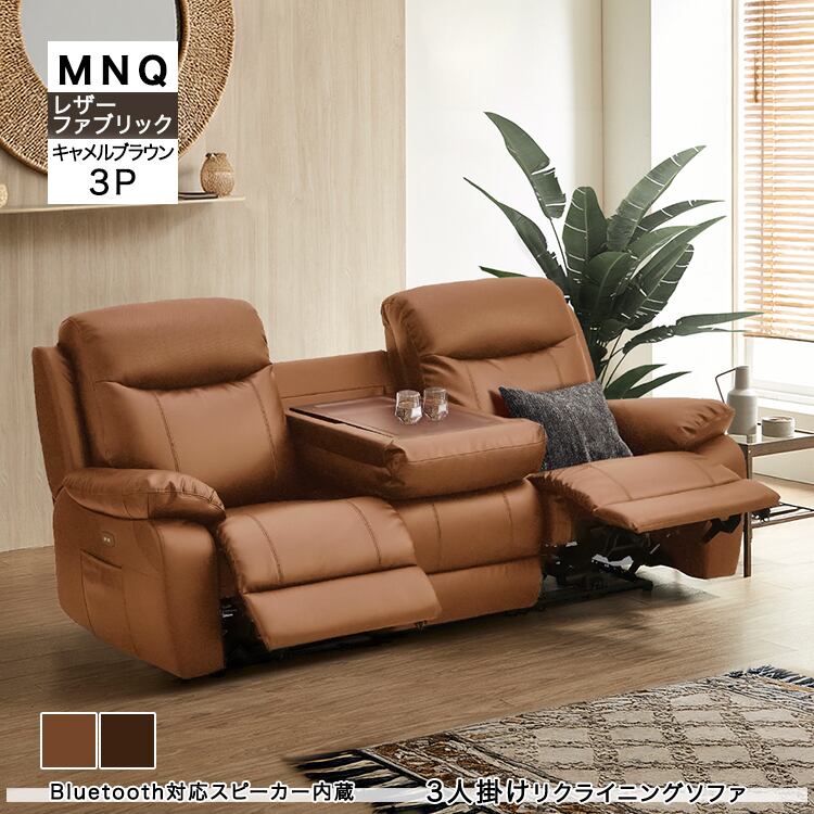 ソファ レザーファブリック 3人掛け リクライニング テーブル付 Bluetooth対応スピーカー内蔵 ポケットコイルソファー LGN